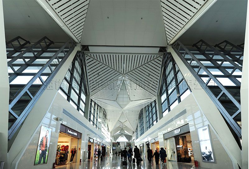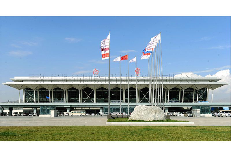 西寧曹家堡機(jī)場位于海東市互助區(qū),航站樓距西寧市區(qū)30公里。本期航站樓設(shè)計(jì)目標(biāo)為2020年年旅客吞吐量400萬人次,其中國際旅客年吞吐量3萬人次,國內(nèi)旅客吞吐量397萬人次。本期航站樓呈“工”字形布局,為指廊式結(jié)構(gòu),指廊端放大為集中候機(jī)區(qū),設(shè)10個(gè)近機(jī)位(8C4D)。高峰小時(shí)旅客吞吐量1855人,其中國內(nèi)部分為1699人,國際部分為156人,高峰小時(shí)進(jìn)出港旅客比例均為55%,人數(shù)均為935人。旅客中轉(zhuǎn)率為50%,旅客中轉(zhuǎn)人數(shù)85人。新航站樓總建筑面積43950.0平米,占地面積21654.0平米,地上二層,地下一層,建筑高度30.4,米,結(jié)構(gòu)形式為框架、鋼結(jié)構(gòu),設(shè)計(jì)使用年限50年,抗震設(shè)防烈度7度。