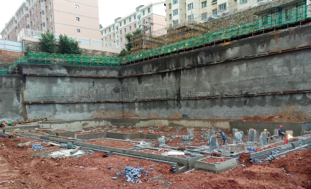 根據(jù)現(xiàn)場(chǎng)地質(zhì)條件及基坑周邊環(huán)境,依據(jù)《建筑基坑支護(hù)技術(shù)規(guī)程》(JGJ120-2012)及《濕陷性黃土地區(qū)建筑基坑工程安全技術(shù)規(guī)程》(JGJ167-2009)規(guī)定確定;基坑北側(cè)及西側(cè)基坑深度為8.6-10.0m,支護(hù)結(jié)構(gòu)安全等級(jí)為為二級(jí);其余兩側(cè)(東側(cè)及南側(cè))開挖深度在9m-12.1m之間,支護(hù)結(jié)構(gòu)安全等級(jí)為一級(jí)。此次支護(hù)基坑側(cè)壁安全等級(jí)為一級(jí)。本著安全穩(wěn)定、經(jīng)濟(jì)合理的原則,本次基坑支護(hù)設(shè)計(jì)采用排樁+預(yù)應(yīng)力及懸臂樁等綜合性,分段性的支護(hù)支護(hù)方式進(jìn)行?;又ёo(hù)設(shè)計(jì)工作于2018年完成,并于次年通過青海省建設(shè)工程勘察設(shè)計(jì)咨詢中心有限公司審查合格。