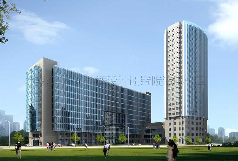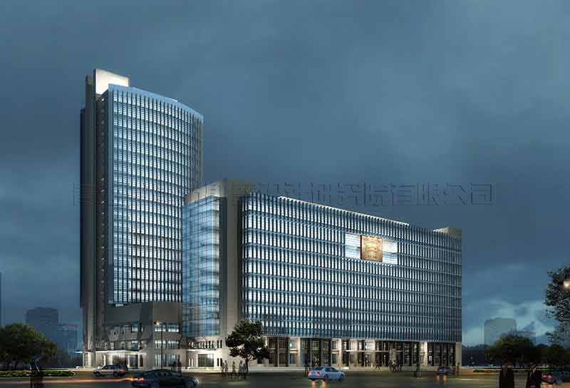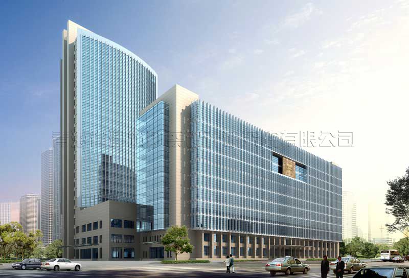 該項(xiàng)目采用豎向線條的組合、劃分,使整個(gè)建筑群體充滿向上升騰的動勢;大面積的玻璃幕墻和金屬線條的組合更具現(xiàn)代氣息。綜合辦公樓的舒展形體與賓館寫字樓的挺拔形體組合,產(chǎn)生出一種動態(tài)的均衡以及獨(dú)特的韻律效果,從而與周邊環(huán)境實(shí)現(xiàn)了完美的融合。