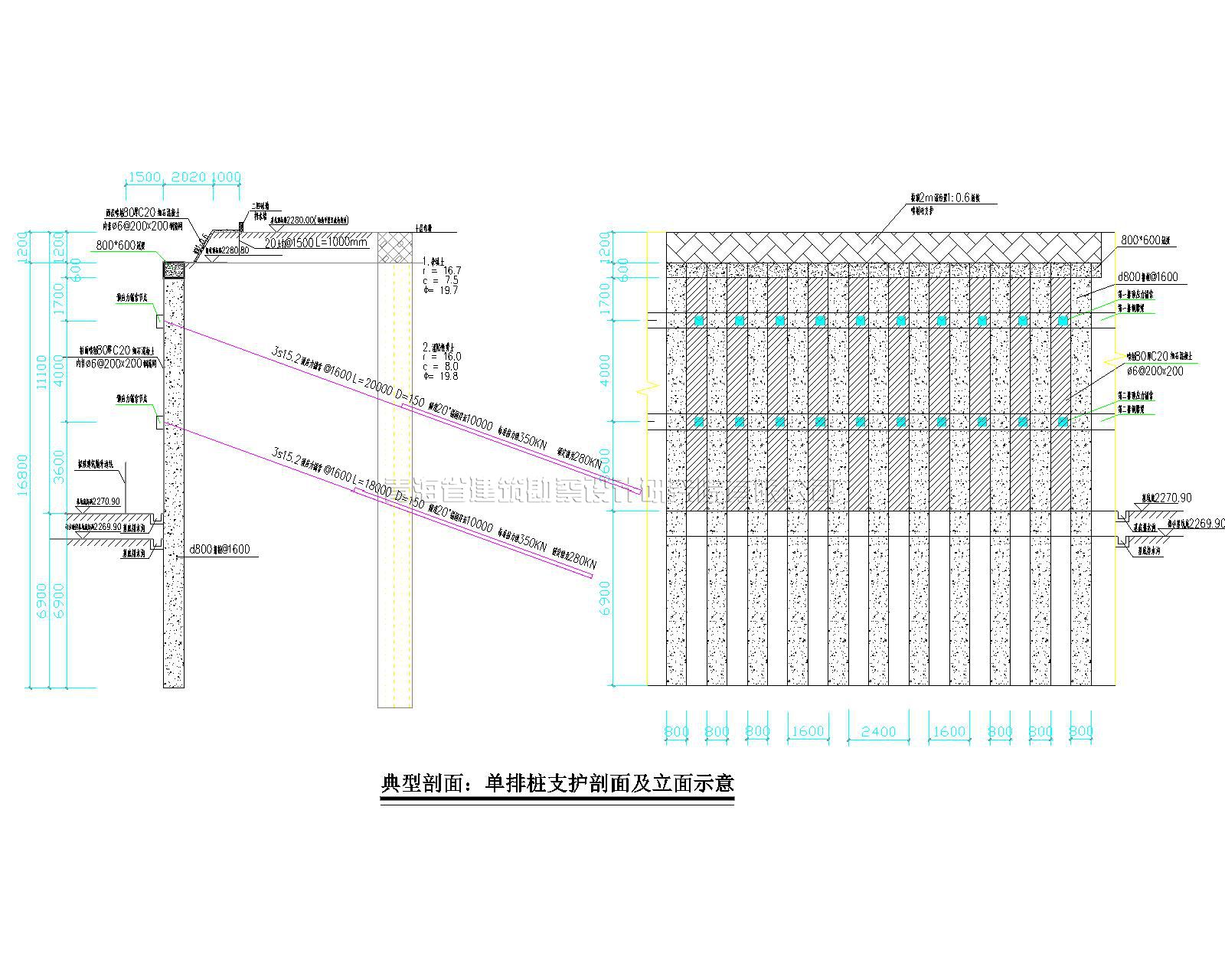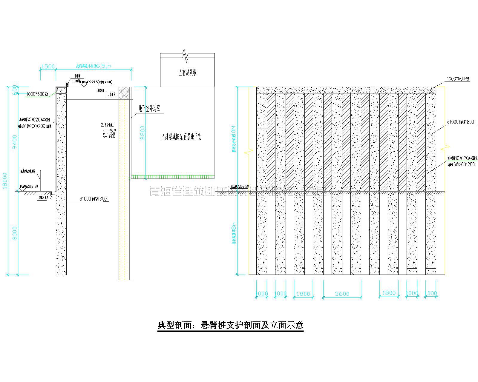 根據(jù)現(xiàn)場地質(zhì)條件及基坑周邊環(huán)境,依據(jù)《建筑基坑支護技術規(guī)程》(JGJ120-2012)及《濕陷性黃土地區(qū)建筑基坑工程安全技術規(guī)程》(JGJ167-2009)規(guī)定確定;基坑北側及西側基坑深度為8.6-10.0m,支護結構安全等級為為二級;其余兩側(東側及南側)開挖深度在9m-12.1m之間,支護結構安全等級為一級。此次支護基坑側壁安全等級為一級。本著安全穩(wěn)定、經(jīng)濟合理的原則,本次基坑支護設計采用排樁+預應力及懸臂樁等綜合性,分段性的支護支護方式進行?;又ёo設計工作于2018年完成,并于次年通過青海省建設工程勘察設計咨詢中心有限公司審查合格。